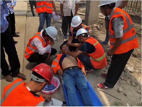 进入盛夏季节,持续高温天气,日照强度高,在阳光长时间照射后室外水泥地面上可高达40度。为切实做好夏季施工现场防暑降温工作,保障施工人员的身体健康、防止因高温天气引发的工人中暑的安全事件,我基建工程部要求江苏民生建设有限公司开展一次中暑应急救援演练。